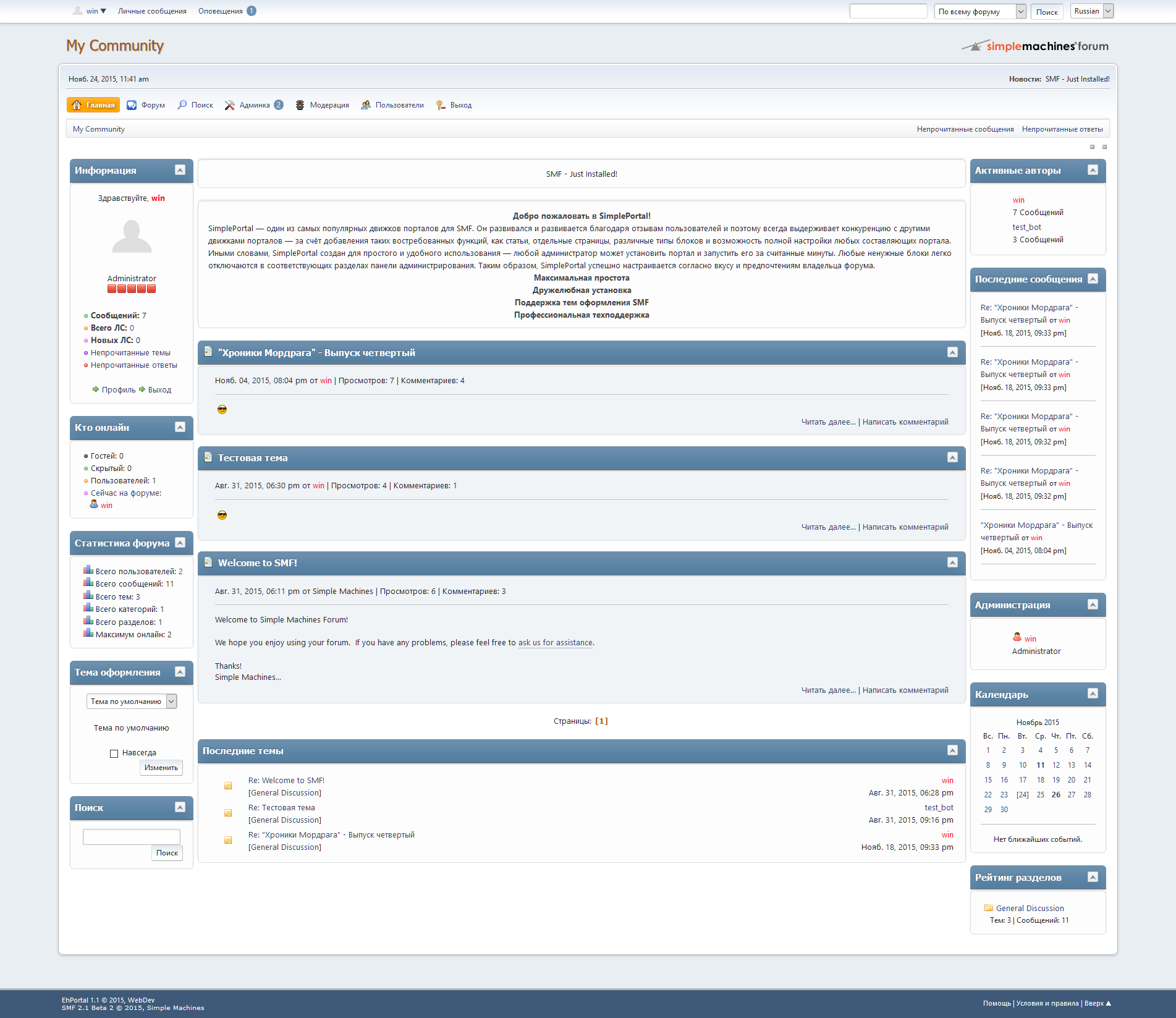 Цитата: GeorG от 24 ноября 2015, 14:47:22Случайно попался портал EhPortal, это адаптированный и немного доработанный SimplePortal, но под версию форума 2.1.